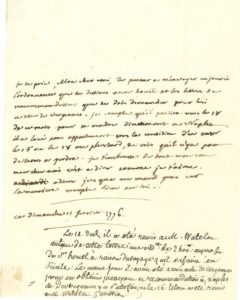 12 janvier 1773. Hommage de reconnaissance et de respect 11 février [1776], priant un ami de lui adresser l'ordonnance destinée à Jean-Pierre HOUEL et des lettres de recommandation de M. de Vergennes : « il partira vers le 18 de ce mois pour se rendre directement a Naples » - À un « tres illustre confrere », le félicitant sur sa « brillante reception » académique