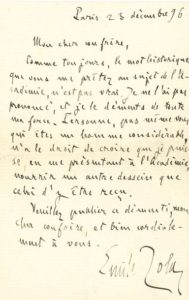 ZOLA Émile (1840-1902). L.A.S. « Emile Zola », Paris 23 décembre 1896, à un confrère …