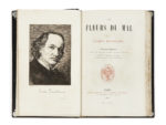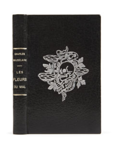 BAUDELAIRE (Charles) — Les Fleurs du mal. — Paris, Poulet-Malassis et de Broise, 1861. — In-12 (18,2 x 11,6 cm), maroquin noir, large motif évoquant l’ouvrage au palladium au centre des plats, dos lisse avec auteur et titre au palladium,...
