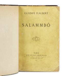 FLAUBERT (Gustave) — Salammbô. — Paris, Michel Lévy frères, 1863. — Pet. in-8 (22,3 x 14,9 cm), demi-maroquin à grain long marron à coins, dos à nerfs orné de motifs dorés, tête dorée, couvertures et dos conservés, non rogné...