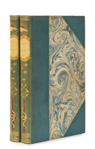 FLAUBERT (Gustave) — Salammbô. — Paris, Librairie des Amateurs, A. Ferroud, 1900. — 2 vol. gr. in-8 (26,8 x 17,8 cm), demi-maroquin vert d’eau à coins, dos lisses ornés de motifs mosaïqués évoquant l’Égypte antique, pièces de titre...
