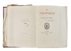 ★HEREDIA (José Maria de) — Les Trophées. — Paris, Alphonse Lemerre, 1893. — Grand in-8 (25,5 x 18 cm), broché, couverture rempliée, chemise demi-toile grenat, étui (Alfred Farez). — [2] ff., IV p., 214 p., [1] f.