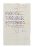 Exemplaire débroché, plats empoussiérés, petits frottements au dos de la chemise, déchirures aux pliures du poème autographe, traces de pliure aux lettres, petite annotation au stylo en pied d’une garde à la fin de l’ouvrage.