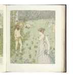 HOMÈRE — Nausikaa. — Paris, l’Édition d’art H. Piazza, 1899. — In-4 (32,2 x 28 cm) entièrement monté sur onglets, box acajou, plat supérieur orné du titre en grandes lettres ajourées au palladium, reprises comme une ombre en filets...