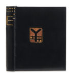 ★JARRY (Alfred) — Les Invites de sable mémorial. Paris, Mercure de France, 1891. — Pet. in-12 carré (14,2 x 11,3 cm), box noir, sur le plat supérieur blason découpé dans une pièce de cuivre reprenant celui de la couverture, auteur et...