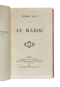 ★LOTI (Pierre) — Au Maroc. — Paris, Calmann Lévy, 1890. — In-12 (18,2 x 11,5 cm), demi-maroquin corail à coins, dos à nerfs orné de motifs dorés, tête dorée, couvertures et dos conservés (Semet et Plumelle).
