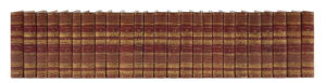 ROUSSEAU (Jean-Jacques) — Œuvres. — Paris, Je. Cl. Bozerian, an X, 1801. — 25 vol. pet. in-12 (14,7 x 9 cm), maroquin à long grain grenat, encadrement d’une frise de motifs dorés sur les plats, dos lisse orné de motifs dorés, doublures...