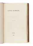 [SAINTE-BEUVE (Charles-Augustin)] — Livre d’amour. — Paris, [Pommeret et Guénot], 1843. — In-12 (18,3 x 11,3 cm), maroquin rose, triple filet doré en encadrement sur les plats avec fleurs aux angles dorées et mosaïquées de maroquin...