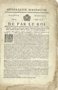 alençon. 5 imprimés, la plupart signés, Alençon 1776-1788 ; plaquettes, placards ou brochures in-fol. ou in-4.