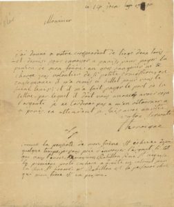 Très rare lettre. « J'ai donné a votre corespondent de Liege deux louis-et-demis pour envoyer a Paris, pour payer la pension de mon frere. Un gros banquier ne ce charge pas volontier de si petite commission, en conséquance il m'a remis ce billet pour vous le faire tenir »...