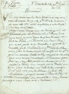 SAINT-DOMINGUE. L.A.S. par les négociants Delaire Painparay& Lamaignère, Nantes 24 décembre 1791, à M. Peyrac à Paris ; 1 page et demie in-4, adresse aveccachet de cire rouge.