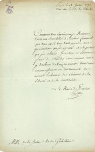 Sur sa réintégration dans ses fonctions de Maire de Paris. [À la suite de l'insurrection du 20 juin et l'envahissement des Tuileries par la populace, Pétion entre en conflit avec le Directoire du département de Paris et est suspendu le 6 juillet ; devant l'agitation croissante des Sections, Louis XVI hésite mais confirme le 12 juillet cette suspension, qui est aussitôt annulée par l'Assemblée]. « Commentvous exprimerai-je Messieurs, toute ma sensibilité de linterét fraternel que vousavez bien voulu prendre aux persécutions que j'ai eprouvé et a la justice que j'aiobtenu. Je ne vous en adresserai point de stériles remercimens mais je tacheraide vous en prouver toute ma reconnoissance en continuant de meriter la hainedes ennemis de la Liberté et de la Constitution »...Ancienne collection Patrice Hennessy (son cachet encre).