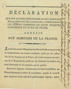 MANIFESTE DE BRUNSWICK. Imprimé : Déclaration que Son Altesse Sérénissime le Duc régnant de …