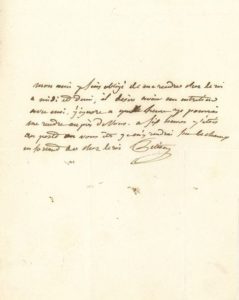 « Mon ami, je suis obligé de me rendre chez le roi à midi et demi ; il désire avoir un entretien avec moi. J'ignore à quelle heure je pourrai me rendre auprès de vous. A six heures j'étois au poste ou vous êtes je m'y rendrai sur le champ en sortant de chez le roi. »