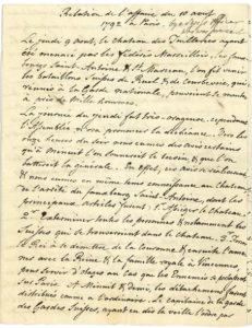 DIX août. Manuscrit autographe par un officier suisse, Relation de l'affaire du 10 aout 1792 à …