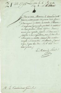 Au sujet de la Prison de la Force : « Je vous ai prié d'y établir un nombre d'hommes si imposant, qu'on ne fut pas tenté de continuer des excès que nous devons déplorer. […] Comme j'ai a rendre compte a l'Assemblée Nationale, j'ignore ce que je puis lui dire sur l'état de cette prison »…