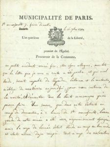 Jacques-Nicolas BILLAUD-VARENNE (1756-1819) conventionnel (Paris), membre du Comité de Salut public, il fut déporté. L.A.S., Sainte-Menehould 16 septembre 1792, à ses collègues ; 3 pages et demie in-4, vignette et en-tête Municipalité de Paris. Procureur de la Commune.