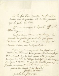Il lui demande de faire un errata dans le prochain numéro de son journal. « Il parait un nouveau journaldans lequel on a imprimé un Testament qu'on pretend être de ma façon et dans lequel il y est mal parlé detoi je te jure que depuis ma sortie de l'abbaye le 4 Sepbre je n'ai écrit que mon agonie de 38 heures et queje n'ai travaillé pour auqu'un journal je ten donne ma parolle tu peux y croire. Porte toi bien Camille jesuis tout à toi »...
