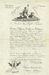 Rouen 20 septembre 1792, expulsion du département d'un prêtre réfractaire, vicaire des Essart (Vendée). - 16 octobre 1793, passeport pour Eustache Bernard Daoust, signé par Xavier Audouin, grande vignette. - 6 pluviôse II (25 janvier 1794), passeport signé par Prosper Sijas. - 26 prairial III (14 juin 1795), passeport pour la citoyenne Mathurin Le Roy, allant aux États-Unis d'Amérique, signé par Cambacérès, Defermon et Treilhard, grande vignette. Plus un passeport vierge de la municipalité de Crépy (Oise).