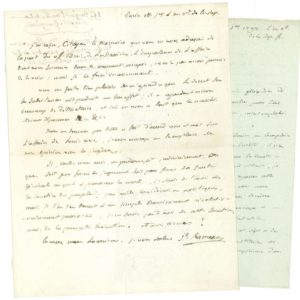 Sur le procès de Louis XVI. - Il n'a pu encore se charger de l'affaire de la municipalité de La Bassière à cause de « l'importance de l'affaire dont nous sommes dans ce moment occupés [...] Nous ne sommes pas tout à fait d'accord vous et moi sur l'affaire de Louis XVI. [...] Si, contre mon avis, on prononçait judiciairement, ou que soit par forme de jugement soit par forme de sureté générale on vint à prononcer la mort, je serois de l'avis de la sanction du peuple, par mille considérations politiques. Mais si l'on s'en tenoit à un simple bannissement révolutionnairement prononcé, je ne serois pas d'avis de cette sanction, mais de la prompte exécution. Et aux armes ! ». - « 90 heures de séance depuis lundi précédées de la plus grande assiduité pendant 15 autres jours »... Il envoie « un exemplaire de mon opinion dans la fameuse affaire du Roi [...] Vous ne serez surement pas étonné de sa différence avec celle de beaucoup de mes collègues, chacun ayant sa manière de voir. Si elle n'a pas le mérite de la vérrité ni de la conviction, elle n'a du moins pas le défaut d'une fatiguante prolixité »...