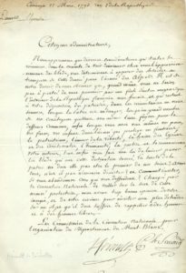 Commissaires de la Convention Nationale pour l'organisation du Département du Mont-Blanc, ils rappellent aux administrateurs qui font obstacle au blé destiné à l'armée des Alpes, que leur devoir est d'en assurer le transport, et que l'armée est prioritaire. Il est primordial que cette denrée atteigne sa destination… « Lorsque la patrie est en danger, lorsqu'un grand nombre de nos concitoyens quittent avec ardeur leur foyer pour la deffense commune, enfin lorsque vous avez-vous-mêmes vos pères, vos frères, vos enfans dans l'armée qui protège vos frontières, le patriotisme, l'amour de la Liberté, la haine des Tyrans et des Aristocrates, l'humanité, la justice et la reconnoissance, votre intérêt, tout enfin vous fait une loi de laisser passer les bleds qui ont cette destination sacrée. La sûreté de la Patrie ne doit-elle pas être le premier de nos soins ? Avant tout, n'est-il pas nécessaire d'exister ? et comment exister, si vous abandonnez ceux qui nous défendent »…