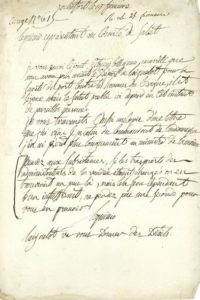 Il envoie à ses collègues un arrêté fixant les mesures à prendre « pour la sûreté du port contre les hommes du Bagne ; il est sévère mais le Salut public dépend en cet instant de pareilles mesures. Je vous transmets aussi une copie d'une lettre […] du Commandant de l'Andromaque »… Il s'inquiète aussi du préoccupant problème de l'approvisionnement du port : « Pensez aux subsistances » : il devient très urgent de s'en procurer car elles sont bien insuffisantes…
