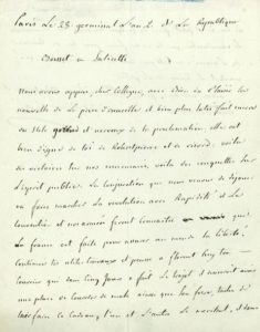 Après l'avoir félicité de la prise d'Oneille, il se réjouit « du stile grand et nerveux de la proclamation : elle est bien digne de toi et de Roberstpierre et de Ricord […] La conjuration que nous venons de déjouer va faire marcher la révolution avec rapidité et la Convention et nos armées feront connaître que la France est faite pour assurer au monde la liberté »…