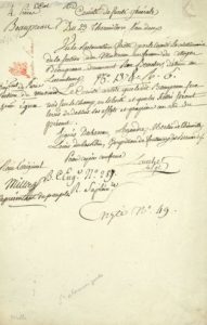 Jean-Baptiste MILLS (1749-1806) conventionnel (Saint-Domingue). Apostille a.s. comme « Représentant du Peuple », sur une P.S. par son collègue Louis LOUCHET (1755-1813), 23 thermidor II (10 août 1794) ; ¾ page in-fol.