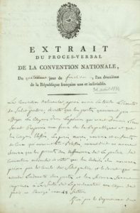 Explosion de la poudrerie de Grenelle [la catastrophe fit un millier de morts]. « La Convention Nationale, après avoir entendu le Comité de Salut public, decrete que les pertes qu'auroient pu essuyer les citoyens dans l'explosion qui vient d'avoir lieu seront reparées aux fraix de la Republique et que les citoyens blessés, les peres, meres, veuves et enfants de ceux qui auroient ete blessés, auront droit au meme secours que les parents des deffenseurs de la patrie. La Convention nationale decrete que les details des mesures prises par le Comité de Salut public et le decret qui accorde l'indemnité des pertes et les secours seront imprimés à la suite de la proclamation aux citoyens de Paris, et envoyé aux 48 Sections »…