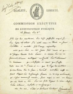 Dominique CLÉMENT DE RIS (1750-1827) homme politique, sénateur, son enlèvement mystérieux en 1800 a inspiré à Balzac Une ténébreuse affaire. L.A.S., 24 frimaire III (14 décembre 1794), à un ami ; 1 page in-4, vignette et en-tête de la Commission exécutive de l'Instruction publique.