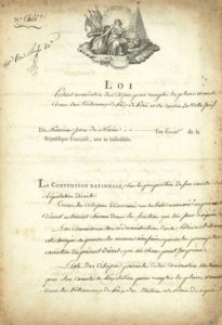 Copie certifiée conforme d'un décret de la Convention relative à la loi portant nomination des citoyens pour remplir les places vacantes dans des tribunaux de paix de Paris et du canton de Villejuif : sont donnés les noms des citoyens proposés et leurs fonctions antérieures : « Section Marat. Lenormand, assesseur, à la place de Babille, homme de loi »… Etc.