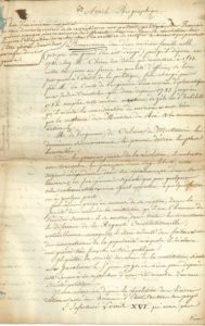 * MANUSCRIT avec note autographe ; 5 p. et quart in-fol. Notice biographique écrite certainement en 1814, où il se présente comme unardent défenseur de la Royauté.