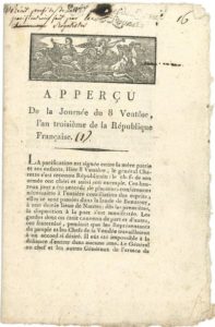 VENDÉE. Imprimé : Apperçu de la Journée du 8 Ventôse, l'an troisième de la République Française (Nantes, impr. d'A.-J. Malassis ; in-8, 8 pp., bandeau).