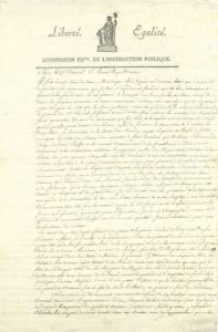 Journées de PRAIRIAL. L.A.S. par Paul CHAIX, Chef de bureau à la Commission d'Instruction publique, Paris 27 prairial III (15 juin 1795), à Clément de Ris ; 2 pages et demie in-fol. très remplies d'une petite écriture, en-tête Commission exive de l'Instruction publique et petite vignette.