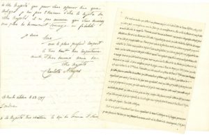 Projet d'une mission en France de Charlotte Atkyns pour rétablir la Monarchie et venger Louis XVI et Marie-Antoinette, évoquant son amitié avec la Reine ;avec un curieuxcommentaire de Louis XVIII.
