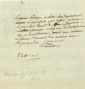 Après sa destitution (16 février, pour avoir exigé arbitrairement des contributions pour frais de table ; le tribunal militaire réuni à Wiesbaden l'absoudra, le 15 mars 1798). « L'oppinion publique a porté son jugement, si la votre ne me refuse pas le sien, je saurai si elles sont d'accord & si ce jugement m'est favorable rendez-moi la satisfaction duë a ma situation, j'attends avec constance et securité l'evenement ma conscience ne me reproche rien »…
