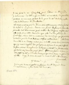 Évreux 9 thermidor VIII (28 juillet 1800). « Les travaux de balisage et de martelage viennent d'être terminés dans toute l'étendue de notre arrondissement. Mes collègues sont tous à leurs postes ». Il demande un congé pour régler des affaires personnelles… Évreux 16 et 26 brumaire IX (7-17 novembre 1800), à propos de l'enlèvement d'arbres morts dans la forêt de Pacy appartenant au Domaine National, et de la nomination d'un nouveau garde forestier aux bois de Saint-Victor… 27 ventôse IX (18 mars 1801), sur les difficiles relations avec l'Espagne, les diligences ne circulant plus entre les deux pays… 3 brumaire XI (25 octobre 1802), amusante lettre avec corrections autogr. à Mme Tissot, lui offrant ses deux plus belles brebis mérinos : « Non contente d'encourager les Arts brillants qui font l'ornement et le charme de la Nation la plus aimable […], vous voulez encore donner l'exemple salutaire du goût des améliorations en Agriculture ». Ces brebis, « également distinguées par leurs formes et par l'extrême fiinesse de la laine […] avaient été choisies par Gilbert mort en Espagne et dont j'ai été appelé à terminer la mission par Lucien Bonaparte, alors Mi. De l'Int. »… 8 août 1813, à la même, félicitations pour la nomination de son époux à la chaire de poésie latine du Collège de France, succédant à son protecteur l'abbé Delille…