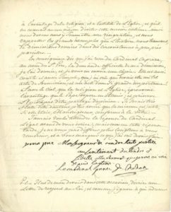 Le Cardinal de Rohan annonce sa démission de l'archevêché de Strasbourg, sur ordre du Pape Pie VII, qui demandait la démission de tous les évêques tant constitutionnels que réfractaires dans une clause du Concordat signé avec Bonaparte ; cela contrairement à 14 des 18 évêques qui composaient l'Assemblée. : « Je ne partage pas leur opinion ; et l'inconvénient de la France sans évêques ne me parait pas un exposé exact. Quoiqu'un évêque donne sa démission, il continue de gouverner son diocèse jusqu'à ce que son successeur se soit présenté. […] C'est donc le Pape que nous savons parfaitement instruit qui nous assure que les démissions de nos Évêques sont nécessaires à l'avantage de la religion, et à l'utilité de l'Église ; et qu'il ne connait aucun moyen d'éviter cette mesure et que nous devons nous y soumettre avec résignation ». En conséquence, dès qu'il a reçu la demande officielle au nom du saint-Père de sa démission, il l'a donnée… Il lui en envoie une copie, courte et simple comme lui semble devoir êêtre un tel acte de soumission : « Fasse le ciel que la religion et l'Église éprouvent l'avantage que le Pape espère en obtenir ; et protège l'Épiscopat d'être partagé d'opinion »…