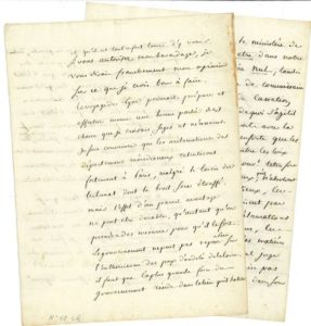 Longue et très intéressante lettre incomplète, à propos de la situation politique, de la lutte du Tribunat contre le 1er Consul (Napoléon), sur la réforme judiciaire… « à Paris l'opinion chemine en sens contraire à l'intérêt du Gouvt. Le parti jacobin va dans le sens du Tribunat - outre que le Premier consul ne tient pas la majorité du tribunat »… Etc.