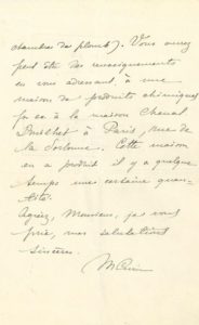 Marie CURIE (1867-1934). L.A.S., Paris 5 mai 1907, au comte de Jouffroy d'Abbans, consul de France …