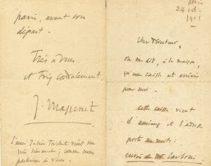 Jules MASSENET (1842-1912). L.A.S., Paris 24 octobre 1901, à Blaise Carboni ; 4 pages in-8.