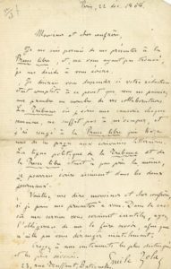 On joint une L.A.S., Paris 22 décembre 1868, à un confrère (1 page in-8, petites fentes au pli). Il s'est présenté à la Presse libre pour savoir « si votre rédaction était complète à ce point que vous ne puissiez me prendre au nombre de vos collaborateurs, La Tribune où j'écris une causerie chaque semaine, ne suffit pas à m'occuper ; et j'ai songé à la Presse libre qui livre une de ses pages aux écrivains littéraires La ligne politique de la Tribune et de la Presse libre étant à peu près la même, je pourrais écrire aisément dans les deux journaux »… Il donne son adresse aux Batignolles.