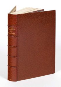 In-12 de (2) ff., 412 pp., maroquin janséniste brun clair, dos à nerfs avec le titre en lettres dorées, large retour intérieur orné de roulettes et filets dorés, tranches dorées sur témoins, couverture et dos conservés, étui (Semet et Plumelle).