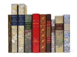 In-8 carré de 341 pp., (3) ff., bradel cartonnage toile verte recouverte de papier marbré, tête dorée, couverture et dos conservés (Honnelaître).