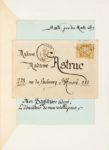 A été jointe au manuscrit une lettre autographe signée de Léon Bloy à Madame Astruc, trois pages in-12 carré sur papier bleu, avec enveloppe timbrée, datée de Mardi, jour des morts 1875 (1) : il avait promis de lui amener Barbey le dimanche, mais celui-ci « n'est pas venu »... Plutôt que de lui « offrir de vaines et sottes excuses », il préfère lui « annoncer ceci » :