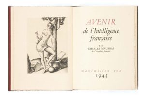 Charles MAURRAS (1868 – 1952) Avenir de l'intelligence Française. Paris, Maximilien Vox, 1943. …
