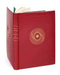 In-12 de 253 pp., (1) f., maroquin bordeaux, motif central aux fi lets dorés courbes irradiants sur les plats, dos lisse avec titre doré encadré de fi lets courbes, fi let doré intérieur, doublure et gardes de daim vert, tranches dorée sur témoins, couverture et dos conservés, étui (Madeleine