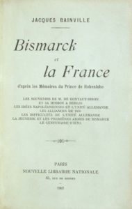 Jacques BAINVILLE (1879 – 1936) Bismarck et la France, d'après les Mémoires du Prince de Hohenlohe.