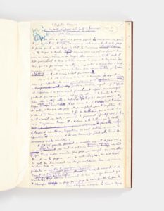 Titre imprimé de l'édition originale (1920) monté en tête et 111 feuillets grand in-8, manuscrits ou imprimés, avec pagination particulière pour chacun des chapitres, les parties manuscrites rédigées à l'encre violette au verso de feuillets de papier à en-tête de la revue de L'Action française ou de la Revue universelle, l'ensemble soigneusement monté sur onglets, maroquin brun, filets à froid sur les plats et au dos, filet doré intérieur (Honnelaître).