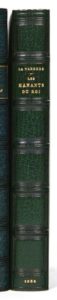 In-12 de (4) ff., 271 pp., (2) ff., chagrin vert bouteille, triple filet à froid sur les plats, dos à nerfs orné de même, filet doré intérieur, tranches dorées sur témoins, couverture et dos conservés, étui (Honnelaître)